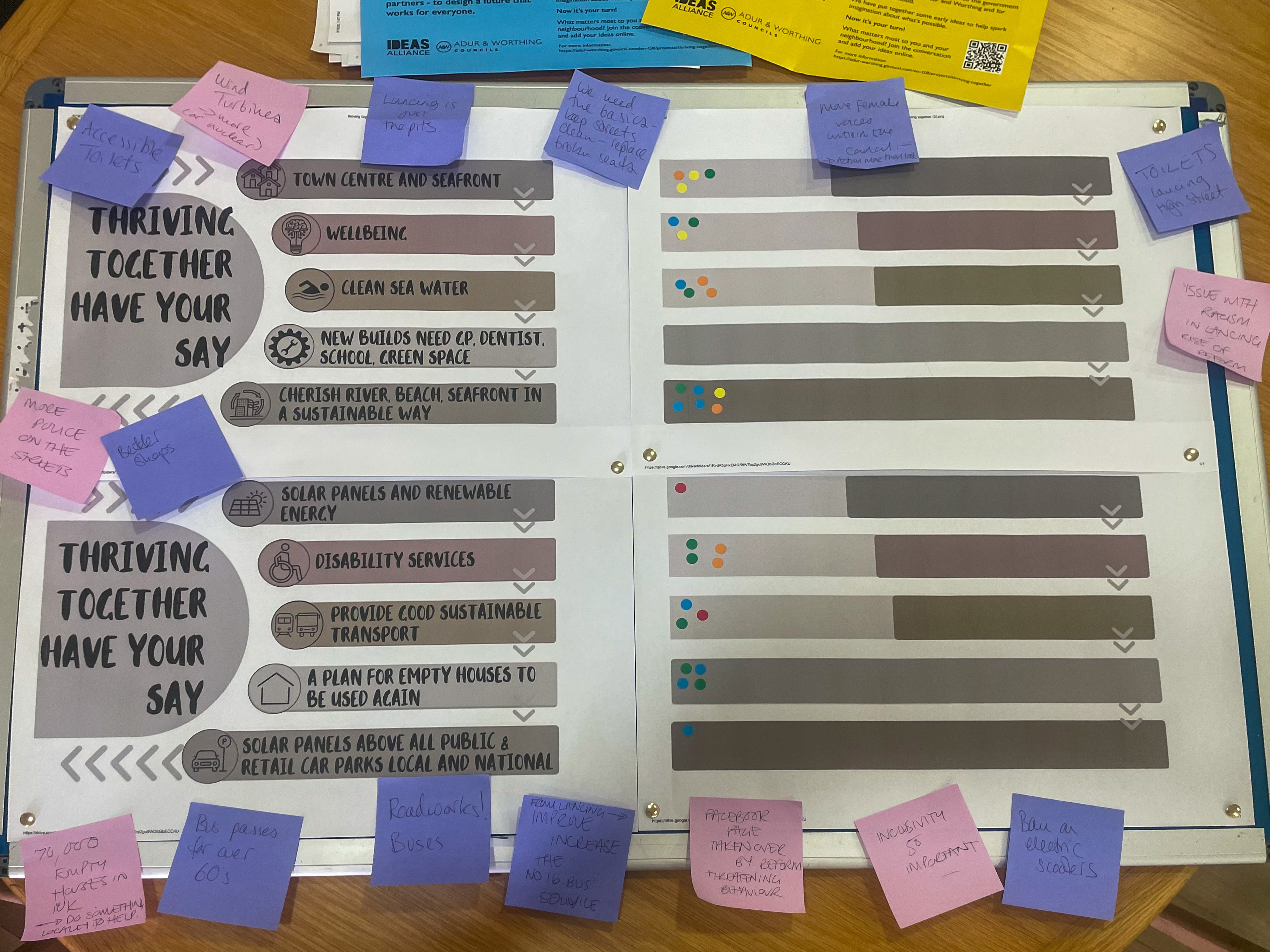 On the south coast of England, Adur and Worthing is a district known for their wide skies, beaches and strong community spirit. With local government reorganisation and devolution on the horizon, the councils wanted to ensure that local voices shaped the priorities for the future — from housing and coastal climate resilience to youth spaces and town centres. Thriving Together was launched to capture what matters most, laying the groundwork for long-term collaboration between communities, councils and partners.