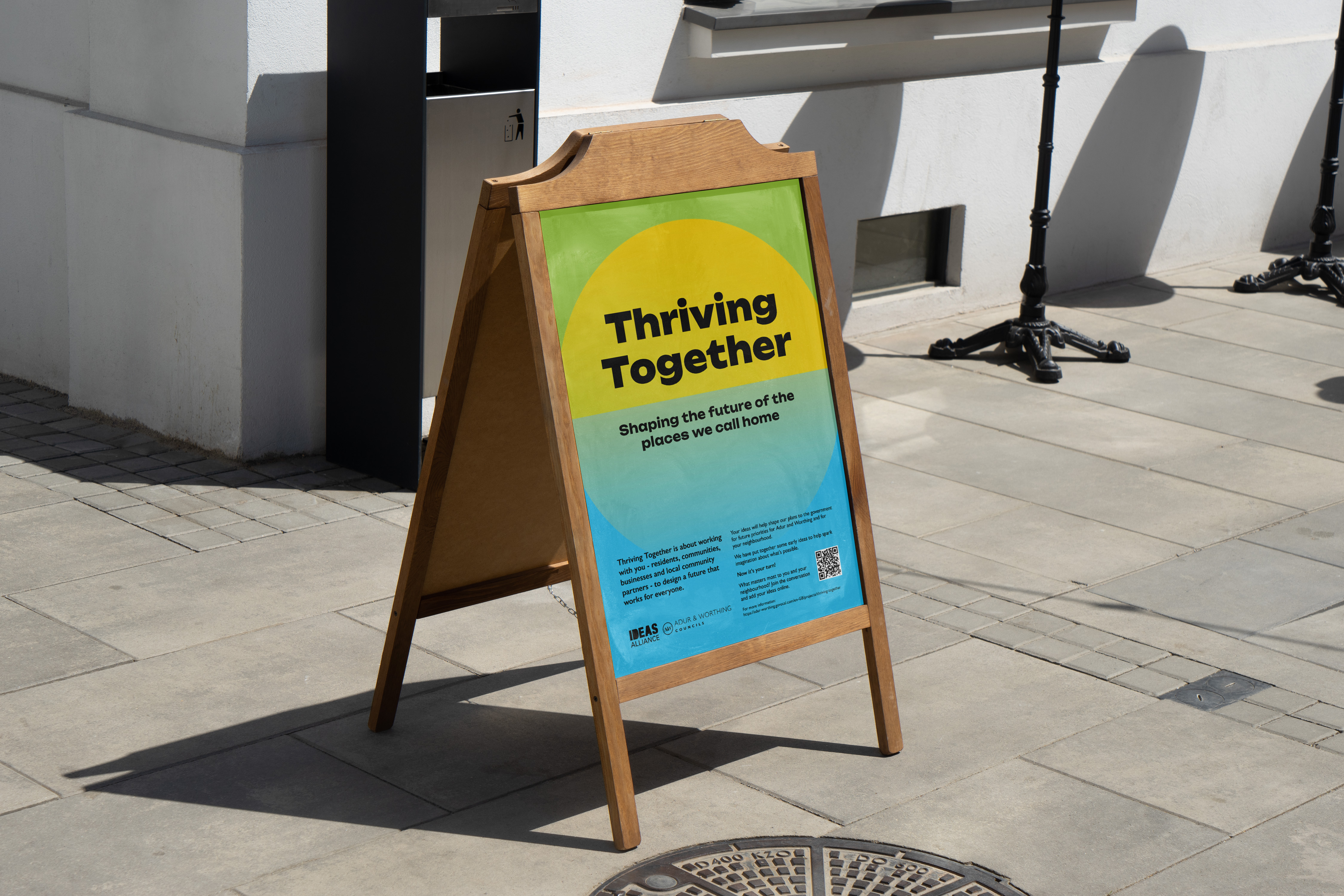 The Place Bureau worked alongside Ideas Alliance to co-design the engagement process using our Collaborative Place Futures toolkit. We created the graphic language for the project and helped turn 700+ community ideas into clear priorities. Our role included analysing results from both street-level conversations and the online platform Go Vocal, and producing the final report that now underpins Adur & Worthing’s devolution proposals.